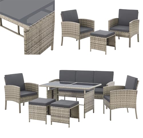 Juskys Salon de Jardin 6 pièces Turin en polyrotin - 7 Perso...