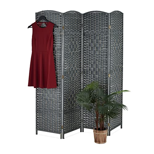 Relaxdays séparateur de pièce Pliant Bois&Corde Papier Gris