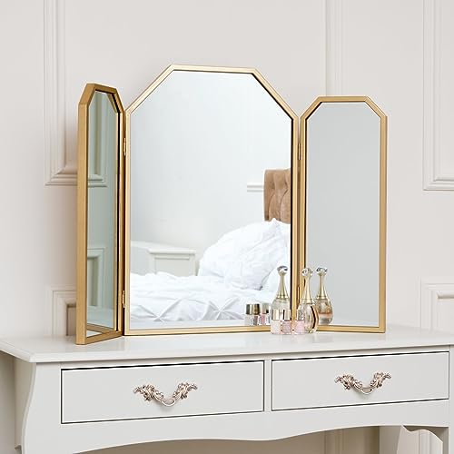 Ce triple miroir hexagonal doré de 82 cm x 59 cm est un miro...