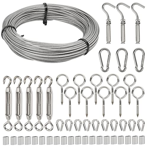 Kit de Corde Acier Inoxydable 30m, Tendeur et Crochets Suspe...