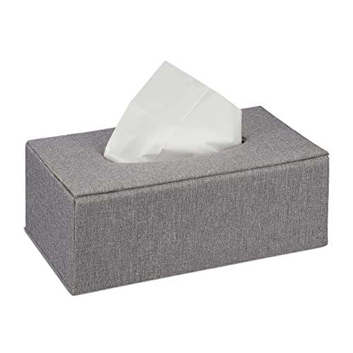 Relaxdays Boîte à mouchoirs lin grise 10x25x13.5 cm