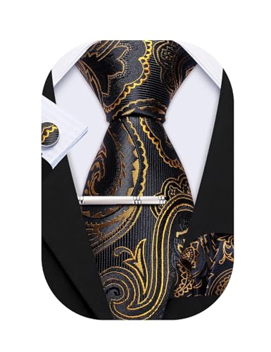 Kit composé Cravate Paisley doré/noir mouchoir de poche bout...