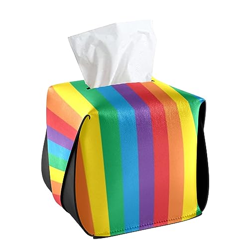 Rayures Arc-en-ciel Boîte à Mouchoirs Carrée Cuir Synthétiqu...