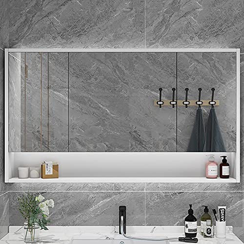 Miroir Mur Armoire Toilette LED Anti-Buée Étagère Blanc
