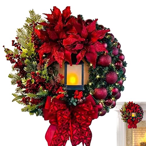 Couronne de Noël pour porte d''entrée | Couronne de nœud lum...