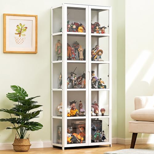 Vitrine sur pied blanche - Avec 7 étagères en verre - Hauteu...