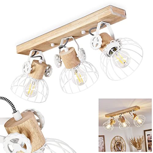 Plafonnier Orny lampe bois naturel orientable métal blanc, j...