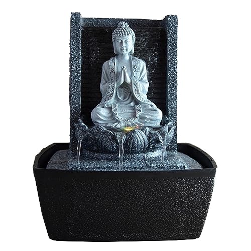 Fontaine intérieure Bouddha Mur de cascade Lotus Lumière LED...