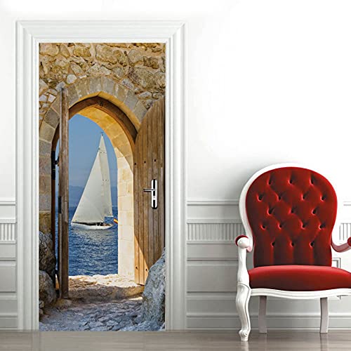 A.M. Sticker Porte Autocollant Voilier sur Vue Mer