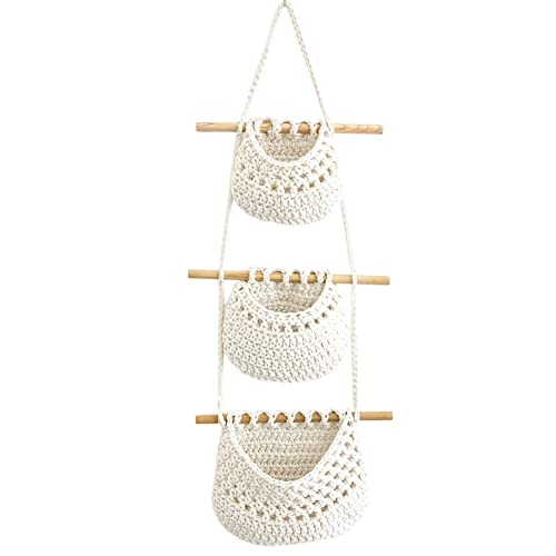 Organisateur suspendu mur, panier 3 niveaux coton, sac range...