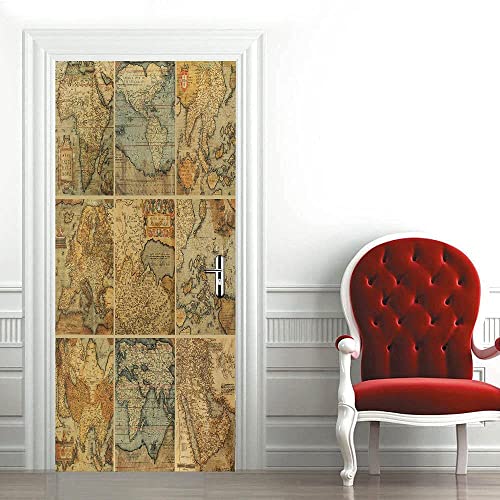 3D Monde Vintage Sticker Mural Porte Autocollant