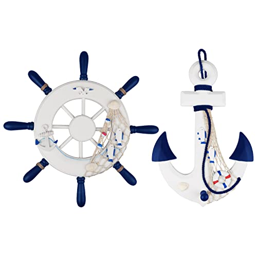 Fangoo 2 Pack 32 CM Roue de bateau en bois et Ancre en bois...