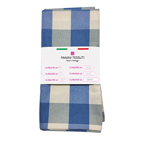 Nappe carreaux taille 140x450 cm bleu tissu 60/40 coton idéa...