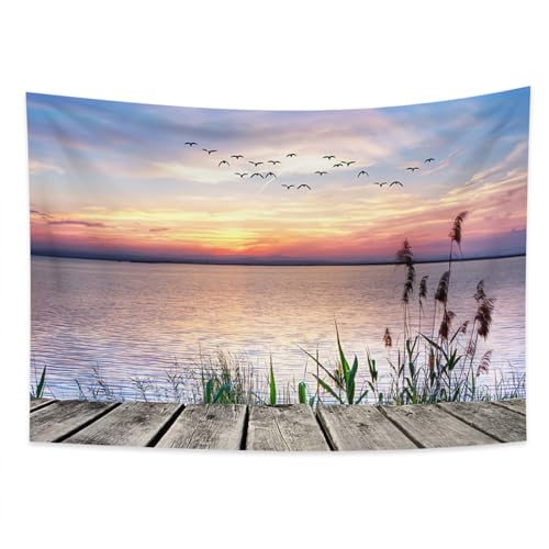 YongFoto 180x160cm Été Tapisserie Bord de mer Roseau Oiseaux...