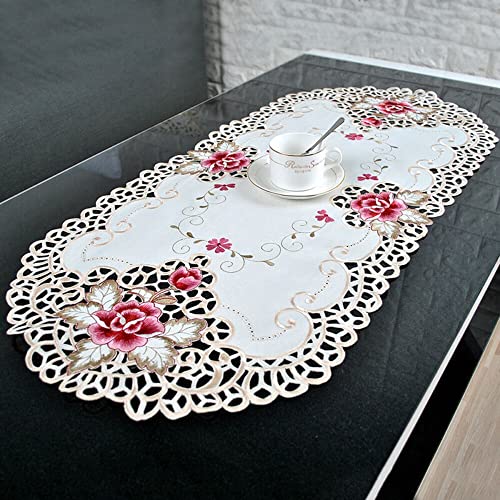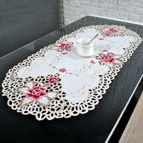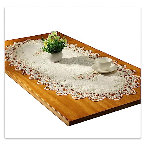 Napperon dentelle brodée, nappe élégante ovale 40,6 x 83,3 c...