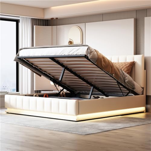 Tcewhhy Lit Rembourré 140x200 Cm avec Éclairage LED Et Espac...