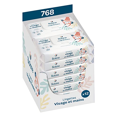 BIOLANE Pack de 12 Lingettes pour bébé visage et mains - Net...