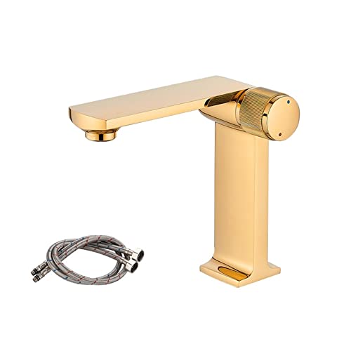 Robinet lavabo mélangeur eau froide chaude or clair-court