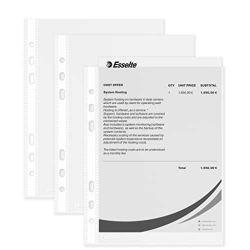 Esselte Pochettes Plastique Perforées A5 Grainée, 43 Microns