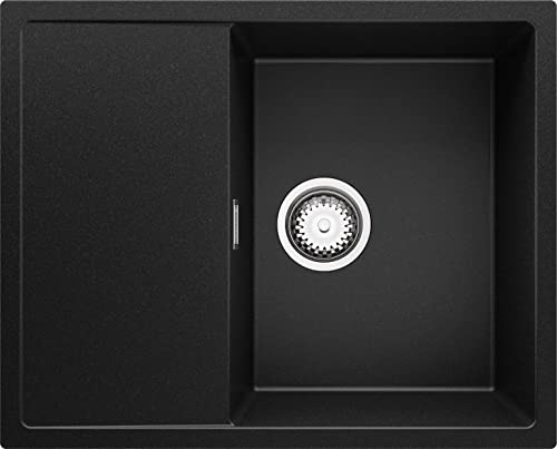 Evier Cuisine en Granit Noir, 62 x 50 cm, Lavabo 1 bac plus...