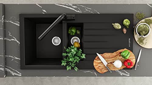 Respecta Évier Minéralite Boston Noir, Évier Encastrable 86x...