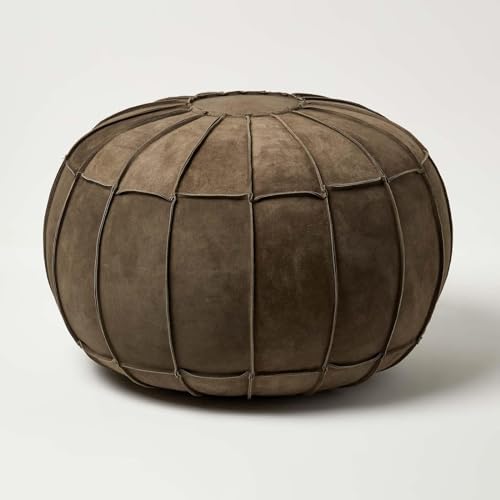 HOMESCAPES Pouf Rond en suédine Marron, Repose Pieds en Cuir...
