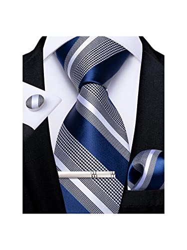 DiBanGu Rayures Bleues Unie Soie Cravate Homogène