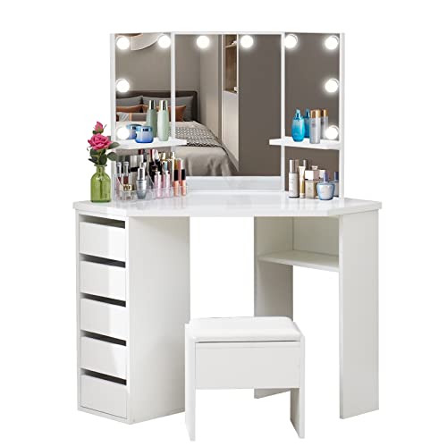 TUKAILA Coiffeuse LED à Grand Miroir, Rangement 3, Table de...