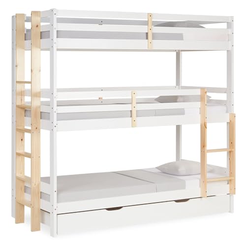 Lit mezzanine moderne pour enfants en blanc avec échelle, ti...