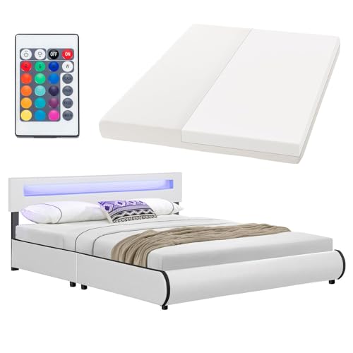 ✔ Lit deux places avec matelas : confortable lit rembourré b...