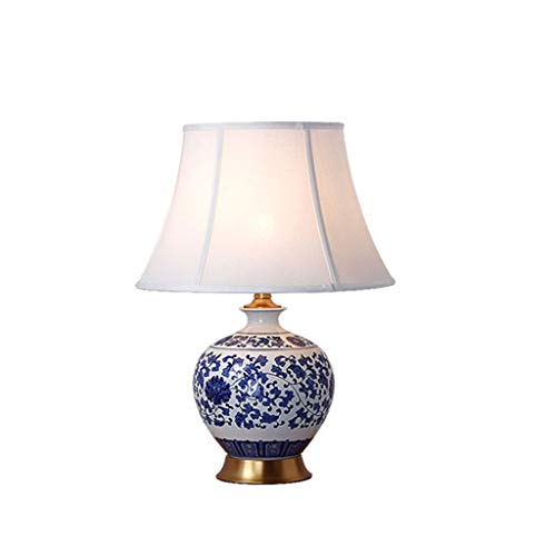 FAJOPQW Lamp de Bureau en Porcelaine Bleue et Blanche Abat-J...