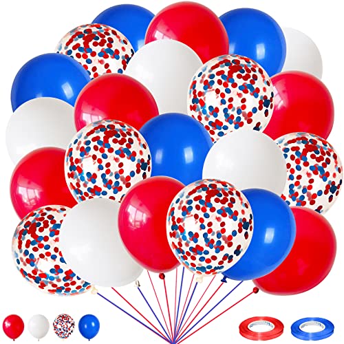 Ballons rouges, bleus, blancs, confettis anniversaire mariag...