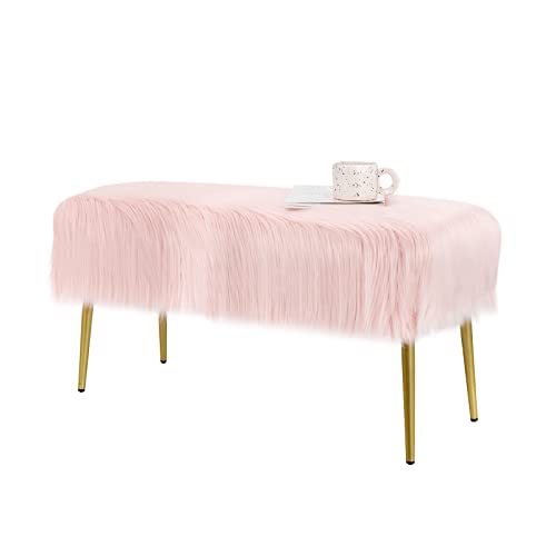 【Tabouret de Coiffeuse en Fausse Fourrure avec Pieds Dorés...