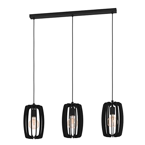 Luminaire suspendu Bajazzara lustre 3 lampes bois métal noir