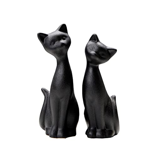 Ensemble de 2 Figurines de Chat Noir en Porcelaine, Mini Fig...