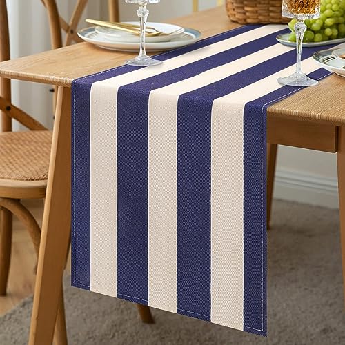 Chemin de Table Rayé Marine Bleu 40 x 140 cm