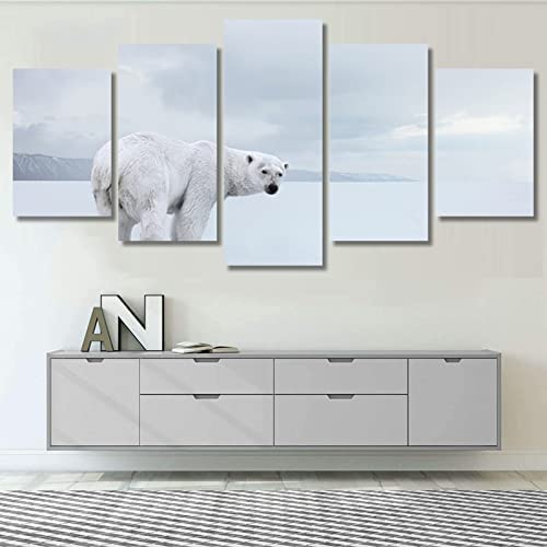 5 Pcs Toile Murale Art Mural Glace Ours Polaire (Xl/Avec Cad...