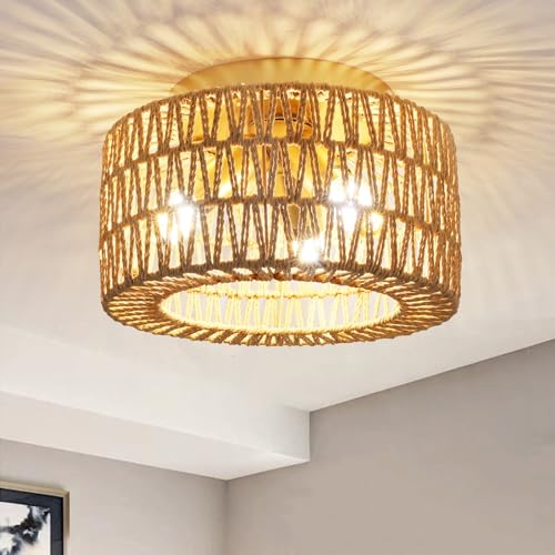 Delaveek Plafonnier en Rotin E27, Rotin Tissé Luminaires Boh...