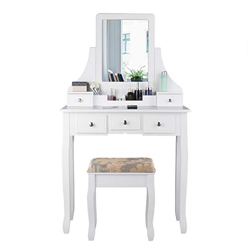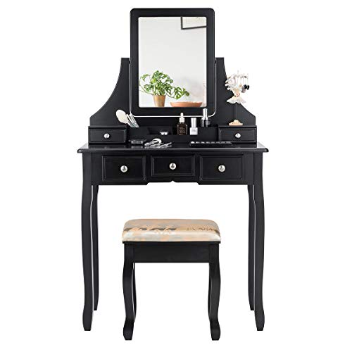 RELAX4LIFE Coiffeuse Rotative, Miroir Tabouret Rembourré, Ta...
