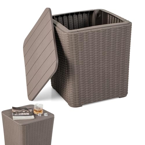 COSTWAY Résine 43L Coffre Extérieur Osier Tissé