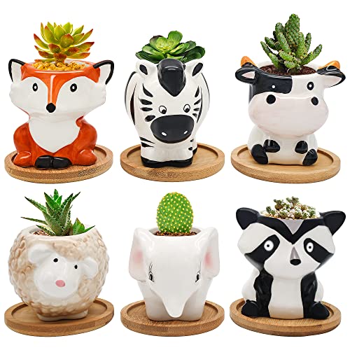 Lot de 6 Petits Pots de Fleurs en céramique en Forme Animal...