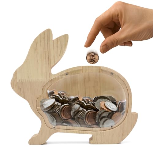 Tirelire en bois, créative, transparente, en forme de lapin,...