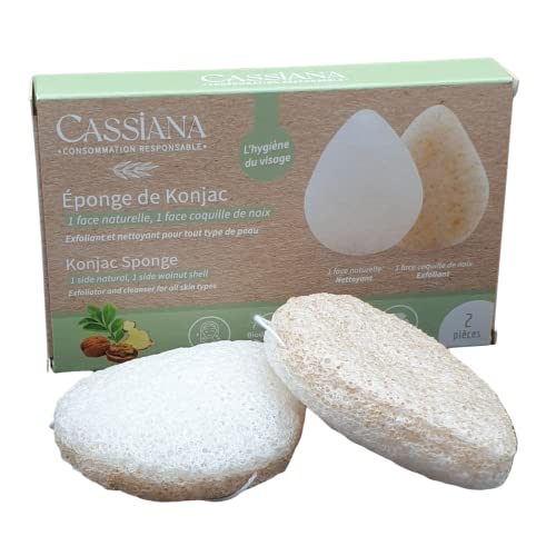 Éponge de Konjac visage Cassiana - Démaquillant double face,...