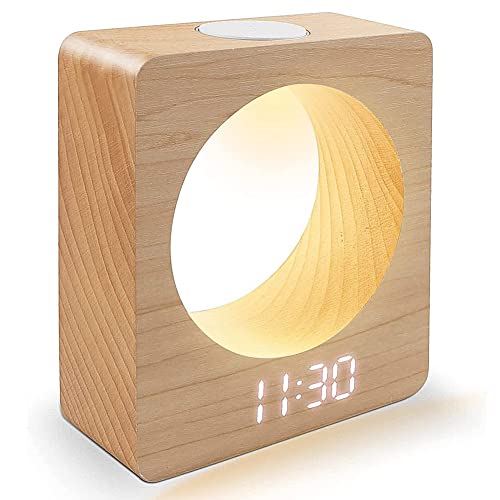 XIAOJUN RéVeil NuméRique LED en Bois en Bois avec Veilleuse...