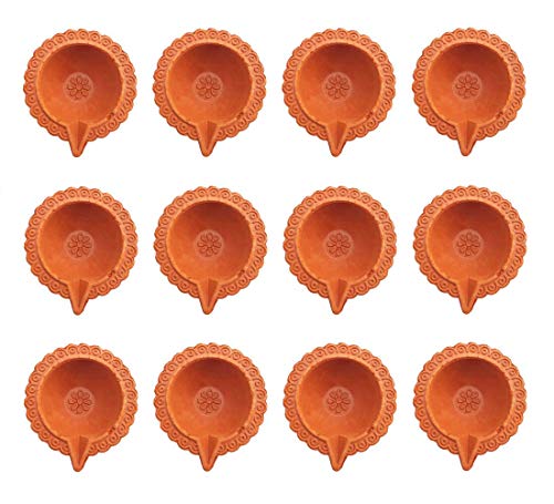 Amroha Crafts Lot de 12 pièces Diya en argile faite à la mai...