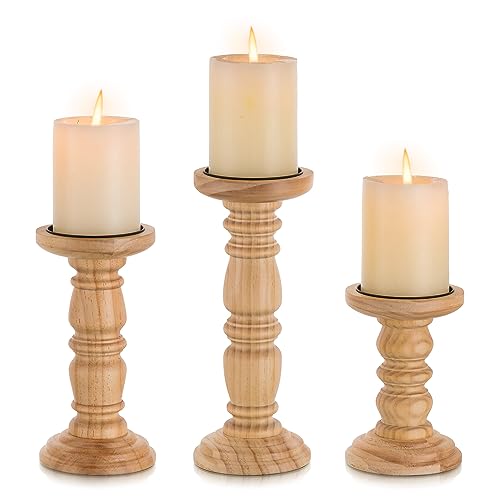 Inweder Bougeoirs en Bois pour Bougies Piliers Lot de 3 Port...