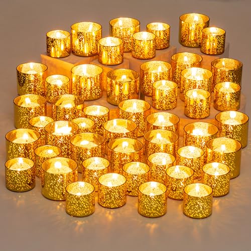 Glasseam Bougeoirs DoréS, Bougies en Verre, Lot de 48, Bougi...