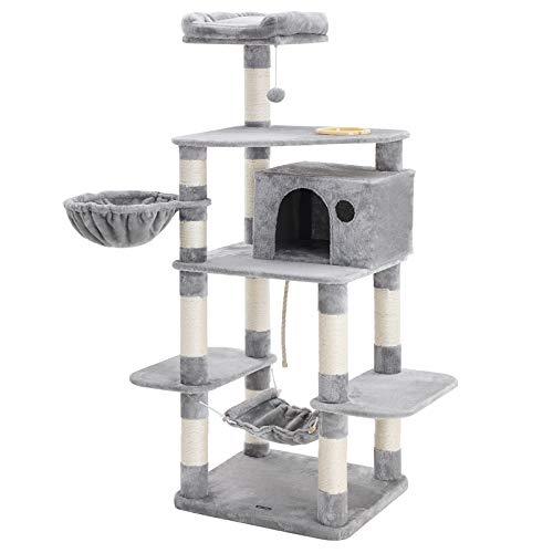 Arbre à Chat Maison Multi-Niveaux, Gris Clair, 164cm