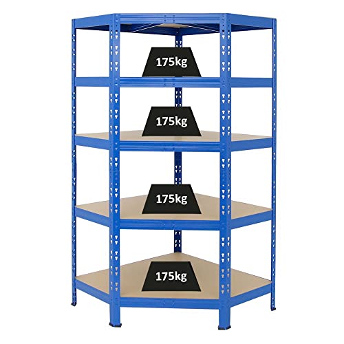 Étagère Charge Lourde Angle, 180x90x45cm, 175kg/Niveau, Bleu