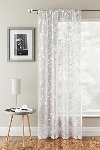 Tirelle Delila Rideau en Voile Blanc Floral – 140 x 122 cm